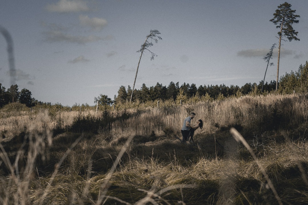 Lasy, jeziora i łąki są idealnym miejscem do sesji narzeczeńskiej jak i ślubnej. Świetnym przykładem są te zdjęcia, w których piękne światło z idealnym tłem zapełniło nam taki obrazek.